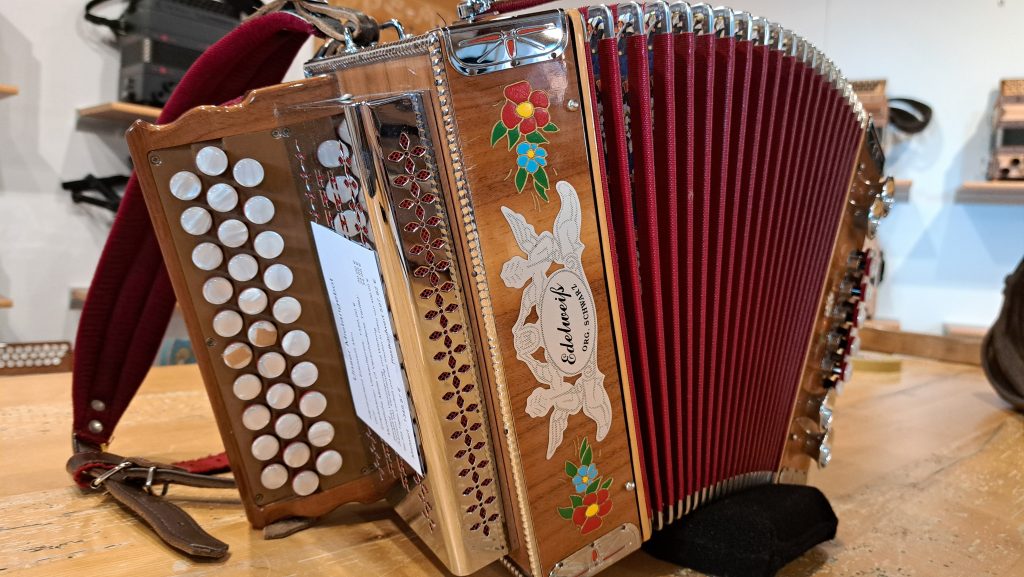 * mit Riemen und Harmonika-Koffer